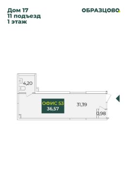 Коммерческое помещение площадью 36.57 находится на 1-м этаже нового жилого дома. Помещение в предчистовой отделке, есть возможность сделать ремон...