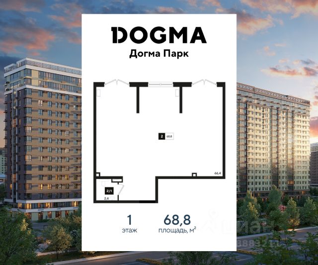 В реализации — коммерческие помещения свободного назначения в литере 4 общей площадью 18.90 кв.м. на 1 этаже в микрорайоне "ДОГМА ПАРК" от застройщика DOGMA, одного из ведущих девелоперов Краснодарского края.