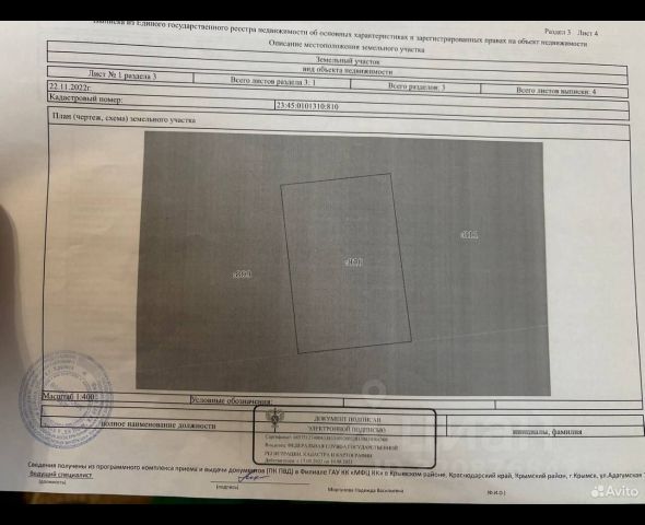 Продаётся участок 8 соток. в г. Крымск, Краснодарский край, м-н Озерки уч. 103 Фасад 20 м. Глубина 40 м. Участок расположен в 5-7 минутах от центра города в благоустроенном, спокойном, зелёном микрорайоне г. Крымска м-н Озерки. Очень красивое место для строительства дома с развитой инфраструктурой (детский сад, магазины Пятёрочка и КБ, Озон, WB, остановка общественного транспорта все в шаговой доступности). С участка шикарный вид на озеро и горы. До чёрного моря 40 км. г. Новороссийск, 60 км. г. Анапа. Вокруг живут и активно строятся соседи. На участке проведено межевание, свет 15 кВт, вода скважина. Газ на соседнем участке. Выдаётся разрешение на строительство. Прописка! Хороший торг. Собственник. Не упустите возможность приобрести шикарный участок. Цены будут только расти.