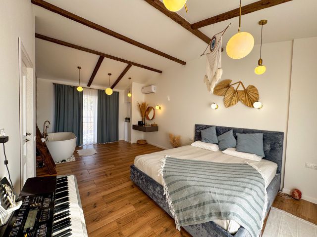 Таунхаус с полной отделкой и меблировкой "под ключ" в закрытом посёлке элит-класса "Солнечные сады". Общая площадь 91,9 кв.м. + 30 кв.м. эксплуатируемая кровля + дополнительный участок с торца! Первый этаж: кухня-гостиная, санузел, гардеробная, кладовая. Второй этаж: две спальни, санузел, кабинет. Третий этаж - эксплуатируемая кровля: сауна, душевая, мини-бар, естественный солярий. КУПИТЬ можно: 100% оплата ипотека Сбер, ВТБ взамен собственной недвижимости по рассрочке Обращайтесь, поможем получить ипотеку, продать Вашу недвижимость, принять Вашу недвижимость в счёт оплаты цены таунхауса. Звоните, по цене возможна договорённость. Продажа по Договору купли-продажи. Цена указана 100% правильная. Фото реальные. Объявление не фейк и не лидо-генератор. Смело звоните. О ЖИЛОМ КОМПЛЕКСЕ: Посёлок таунхасов СОЛНЕЧНЫЕ САДЫ выполнен в едином архитектурном стиле с минимальной плотностью застройки, круглосуточной охраной и комфортными парковочными местами. Каждый таунхаус имеет собственную террасу, два открытых балкона. Бонус - открытая благоустроенная кровля 30кв.м. для размещения сауны, бассейна и шезлонгов. РАСПОЛОЖЕНИЕ: Комплекс находится в Адлерском районе г. Сочи. Поблизости расположились исторические достопримечательности, места развлечений и другие необходимые социально-бытовые объекты. ЦЕНТР АДЛЕРА 15 минут ОЛИМПИЙСКИЙ ПАРК 20 минут АЭРОПОРТ 15 минут КРАСНАЯ ПОЛЯНА 35 минут ДО МОРЯ 2.3 км Уникальное расположение вблизи Черного моря, земельный участок в собственности, современная отделка и элитное обслуживание. 1. УПРАВЛЯЮЩАЯ КОМПАНИЯ. Возьмёт на себя всю отчётность. 2. УМНЫЙ ДОМ. Установлена система умный дом. 3. КОНСЬЕРЖ-СЛУЖБА. Займётся размещением гостей. ИНФРАСТРУКТУРА: 1. БАССЕЙН. На территории посёлка расположен бассейн с зимним подогревом воды с уютным лаунж-пространством, шезлонгами и баром. 2. СПОРТИВНАЯ ПЛОЩАДКА. На территории посёлка расположены: теннисный корт, футбольная, волейбольная, баскетбольные площадки, спортивный зал под открытым небом. 3. ДЕТСКИЕ ПЛОЩАДКИ. Для маленьких жителей посёлка предусмотрены комфортные и безопасные детские площадки, тренажеры. БЕЗОПАСНОСТЬ: Территория комплекса находится под охраной, функционирует консьерж-служба, ведется круглосуточное видеонаблюдение периметра. БЛАГОУСТРОЙСТВО: Ландшафтное озеленение придомовой территории. Подъезд к посёлку и дороги внутри посёлка таунхаусов заасфальтирован. Коммуникации проведены.