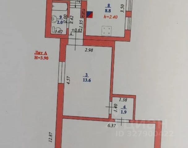 дом (2 изолированные комнаты, большой зал с потолком 3,6 м + рабочий камин, ванная комната, кухня, кладовка)