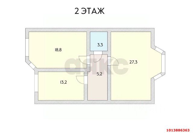 Спальня 13,3 м, детская/кабинет 7 м, зал 14,9 м, прихожая 7,7 м, кухня 10,2 м.