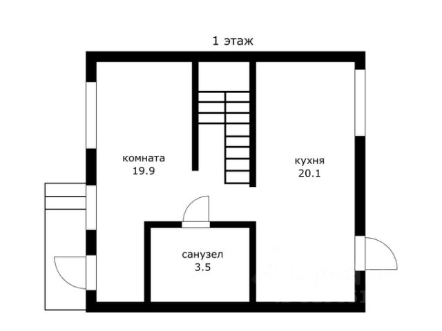 Коттедж общей площадью 100 кв.м эргономичной планировки: крытое крыльцо, прихожая 9,2 кв.м, холл, просторный санузел, кухня-столовая 18 кв.м с выходом на обустроенную застекленную террасу 20 кв.м, гостевая комната 11 кв.м, лестница на второй этаж — на первом этаже.