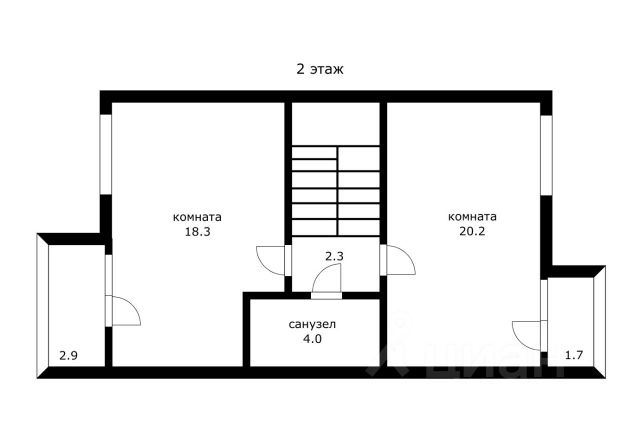 На втором этаже — холл, санузел, гардеробная, две изолированные спальни.