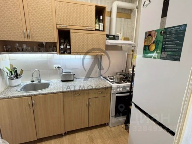Таунхаус на крыше укомплектован кухней с холодильником, столом и стульями
