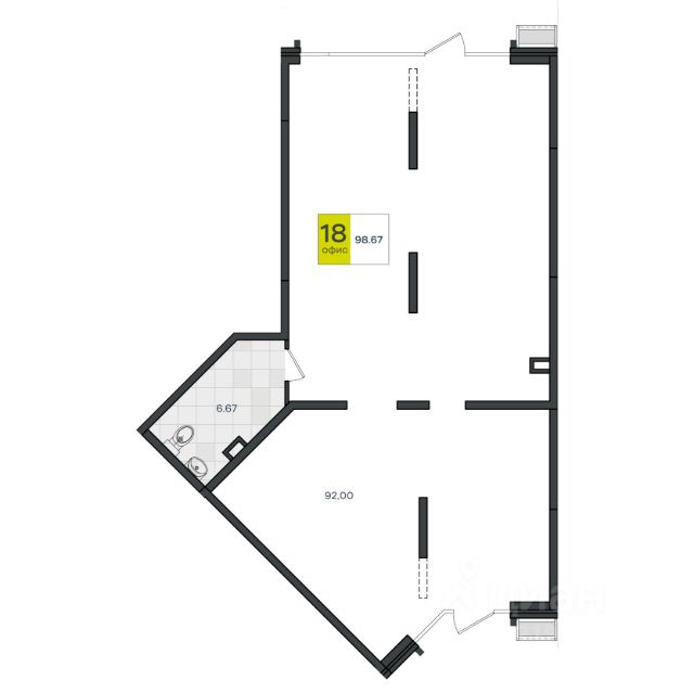 Коммерческое помещение площадью 98.67 находится на 1-м этаже нового жилого снеднеэтажного дома. Помещение в предчистовой отделке, есть возможность сделать ремонт под свой...