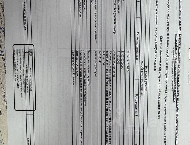 Продам земельный участок в п Грушевый в Белореченсом районе,Краснодарского края! Поселок расположен в ближайшем пригороде Белореченска. В поселке развитая инфраструктура,имеется все необходимое для комфортной жизни:школа,магазины,аптеки и т.д. общественный транспорт в город холит часто и стабильно. Поселок разрастается не по дням,а по часам.Поселок граничит рядом с Гончаркой,в котором расположен уникальный дендрологический парк. Участо расположен в центре поселка. На границе с участком уже установлен столб для подключения э/энергии.Также,по меже проходит газ. Также,получено разрешение на строительво дома 10м*10м. Звоните! Код пользователя: 181765 Номер в базе: 6750251