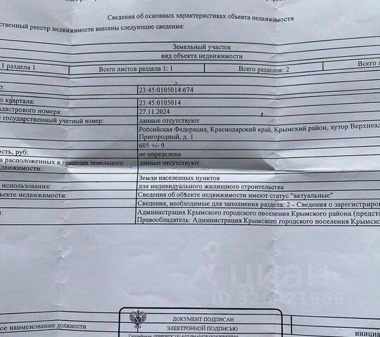 Если вы видите это объявление, значит, оно актуальное и не фейк! Продам земельный участок 9,9 соток в очень красивом месте.В экологически чистом районе.К участку подведены все центральные коммуникации.Газ по меже, свет. Вода скважина. С трёх сторон у вас не будет соседей( для тех кто любит тишину).Участок окружен ласковой тенью Кубанских ореховых лесов. Мы являемся партнерами трех банков. Полное сопровождение сделки и юридическая проверка. Специальные условия для участников СВО и по услугам гос. поддержки. При звонке сообщите нам ID объекта 729340