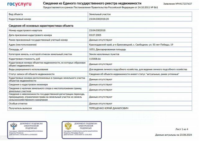 Продам право аренды на 20лет. Дата договора аренды - 18 ноября 2024г. Кадастровый номер участка 23:14:0301004:4732. Арендная плата: 29350,00руб. в год. Вид разрешенного использования: для ведения личного подсобного хозяйства (приусадебный участок). То же самое, что и ИЖС, т.е. можно строить дом и плюс к этому разрешено завести хозяйство. После постройки дома и его регистрации участок можете выкупить за 3% от кадастровой стоимости. Не субаренда. Также для продажи есть участки: - 23:14:0405001:501 х.Тверской (3800руб в год) - 50тр; - 23:14:0405001:502 х.Тверской (8000руб в год) - 50тр; - 23:14:0405001:500 х.Тверской (3500руб в год) - 50тр.