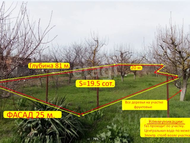 Продаётся идеальный участок для строительства в Славянске-на-Кубани в СНТ Заря! Один взрослый собственник, без обременений — быстрый выход на сделку! Подходит под льготную семейную ипотеку. Основные характеристики: Общая площадь участка — 4,5 сотки. Размеры фасада — 15 метров и 29,5 метров. Назначение — земли населённых пунктов, для садоводства с возможностью перевода в ИЖС. Угловое расположение, удобная форма и расположение в СНТ. На участке располгается уже плодоносящий сад - груша, слива, абрикос, боярышник, мачмала (мушмула), съедобная жимолость, виноград. Коммуникации: Электричество подключено. Водоснабжение — своя скважина. Газификация в проекте. Транспортная доступность: Краснодар — 80 км. Темрюк — 75 км. Анапа (Чёрное море) — 96 км. Новороссийск (Чёрное море) — 93 км. Участок находится в жилом массиве, соседи живут постоянно. Это отличное место для строительства дома вашей мечты! Есть проверенные застройщики, которые помогут воплотить вашу идею в реальность. Гарантия безопасности сделки. Звоните прямо сейчас и организуем оперативный показ! Не упустите свой шанс стать обладателем идеального участка!. Дополнительно оплачивается комиссия с покупателя. Код пользователя: 187265 Номер в базе: 12303178