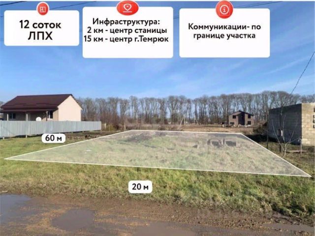Участок площадью 12 соток в станице Курчанская предлагает выгодные возможности для комфортного проживания или ведения личного подсобного хозяйства. Земля относится к категории населенных пунктов, назначение — ЛПХ, что позволяет использовать ее для строительства жилого дома и выращивания сельскохозяйственных культур. Фасад участка составляет 17 метров, что обеспечивает удобное размещение построек. Инженерные коммуникации доступны для подключения: по границе участка проходят газ и водопровод, электричество уже подведено с выделенной мощностью 15 кВт, что достаточно для комфортного проживания. Расположение участка сочетает преимущества тихой улицы с развитой инфраструктурой. В пешей доступности (до 185 метров) находится Курчанский лиман — отличное место для рыбалки и охоты. В шаговой доступности расположены детский сад, школа, автобусные остановки, сетевые магазины, амбулатория, новый парк и Дом культуры, что делает жизнь здесь удобной для семей с детьми. Транспортная доступность — одно из ключевых преимуществ. До центра Темрюка всего 4 км, что обеспечивает быстрый доступ к городским услугам. Ближайшее Азовское побережье (станица Голубицкая) находится в 20 минутах езды на автомобиле, что делает участок привлекательным для тех, кто ценит близость к морю. Краснодар расположен в 130 км, а курортная Анапа — в 50 км, что открывает дополнительные возможности для путешествий и отдыха. Участок подходит как для постоянного проживания, так и для сезонного использования. Благодаря удобной логистике, наличию коммуникаций и развитой инфраструктуре он представляет собой выгодное вложение в недвижимость с перспективой дальнейшего развития. Для уточнения деталей и организации просмотра свяжитесь с продавцом. . Дополнительно оплачивается комиссия с покупателя. Код пользователя: 187276 Номер в базе: 9592796