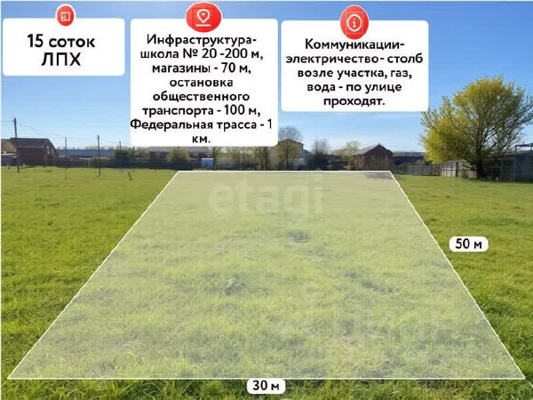 Участок площадью 15 соток правильной формы в поселке Красный Октябрь предлагает отличные возможности для строительства собственного дома. Ключевым преимуществом является фасадная часть протяженностью 30 метров, что позволяет при желании разделить землю на два самостоятельных участка. Объект продается напрямую от собственника, вся документация подготовлена для быстрой и безопасной сделки. Участок полностью соответствует требованиям программы "Семейная ипотека". Основные коммуникации, включая газ и водопровод, проходят по улице, а электрический столб расположен в непосредственной близости, что существенно упрощает и удешевляет процесс подключения и дальнейшего строительства. Локация отличается развитой повседневной инфраструктурой: в 70 метрах находятся асфальтированная дорога, магазин "Магнит", столовая, сельскохозяйственный рынок, СТО и автомойка. В шаговой доступности, в 200 метрах, расположена школа 20, а в 500 метрах — детский сад 18. Транспортная доступность : в километре от участка проходит федеральная трасса, обеспечивающая прямые выезды во все направления Краснодарского края и в Крым. Это позволяет за полчаса добраться до побережья Азовского моря, а до Черноморского побережья — примерно за час, что делает данный участок привлекательным как для постоянного проживания, так и для строительства загородного дома для отдыха. . Дополнительно оплачивается комиссия с покупателя. Код пользователя: 179400 Номер в базе: 11736101