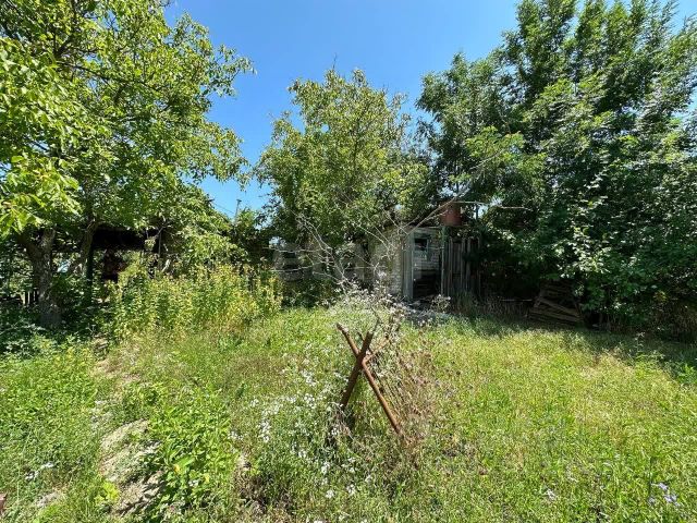 деревья, виноград и прочие ягоды, домик обшит и можно проживать, внутри также отделан. кухонька отдельно стоит. есть электричество, скважина прокачка, можно пить. 300метров от остановки автобуса( маршрутки), там же и магазины. Соседи вокруг с жилыми домами. Цена обсуждаема
