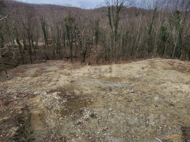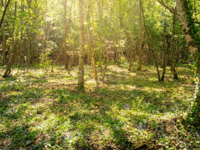 Участок находится на склоне, много деревьев, кустарников, ароматные лечебные травы (чабрец, шалфей). Рядом лес и горы. Прекрасный вид на город и бухту.