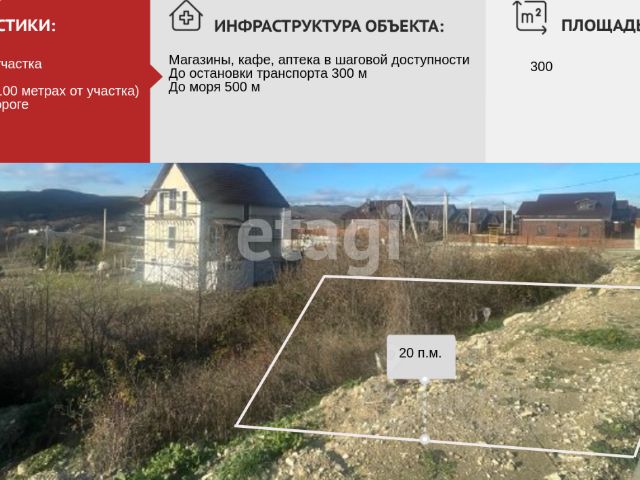 Продаётся! Идеальное место для постройки вашего дома или дачи. Земельный участок 3 сотки. Категория - земли населённых пунктов для индивидуального жилищного строительства. Есть подъезд к участку,свет есть,соседи рядом. Чистый воздух, красивая природа,море в шаговой доступности, всего 700 метров. До города ходит общественный транспорт. До центра Новороссийска 15 минут на машине. До знаменитого посёлка Абрау Дюрсо минут 9. Успейте приобрести по выгодной цене,скоро будет повышение. Участок в собственности, документы к продаже все готовы. В новогодние праздники работаю. Звоните!. Дополнительно оплачивается комиссия с покупателя. Код пользователя: 142757 Номер в базе: 8266787
