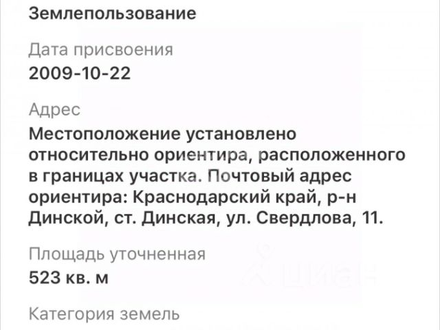 Земельный участок. Площадь 504 кв. М. Адрес (Местоположение):23:07:0811002:549. Российская федерация, Краснодарский край, Динской район, Динское поселение, Динское садоводческое некоммерческое товарищество Труд, ул. Вишнёвая, 15. Документы есть. Объявление создано не риэлтором, не перекупом, не перепродавцом. Фото участка сделаю позже.