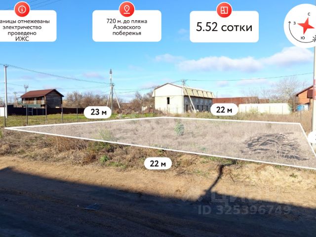 Объект 168184. УЧАСТОК В 700 МЕТРАХ ОТ ПЛЯЖА!!! СТАНИЦА ГОЛУБИЦКАЯ!!! КУРОРТ НА БЕРЕГУ АЗОВСКОГО МОРЯ!!! Продается участок на побережье Азовского моря!!! * Район активно застраивается * В начале улицы уже подвели газ. * В планах центральное водоснабжение * Рядом аквапарк, зоопарк "Лукоморье", мультипарк и другие развлечения * В шаговой доступности сетевые магазины, кафе, аптеки и много другое Успейте приобрести участок на берегу моря!!!