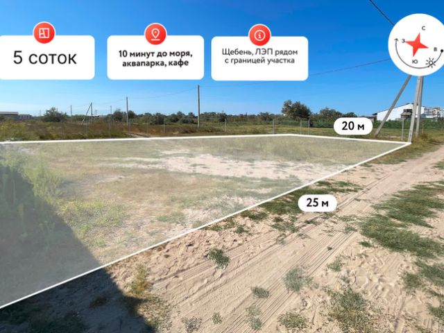 Объект 171577. УЧАСТОК У САМОГО МОРЯ!!! ИЖС!!! 500 метров ДО ПЛЯЖА!!! САМАЯ ПРИВЛЕКАТЕЛЬНАЯ ЦЕНА!!! Продается участок на берегу Азовского моря!!! * Чистый, песчано-ракушечный пляж в 10 минутах * Угловой участок. Ровный, на возвышенности. Не топит * Электричество, газ, вода по границе участка * Рядом улица Курортная, на которой расположены все необходимые для отдыха заведения и развлечения * В поселке есть школа, детский сад, магазины все необходимое для комфортной жизни * 40 км до Тамани и Крымского моста, 20 км до Черного моря, 3 до Темрюка * Тихое и уютное место для жизни у моря Успейте приобрести себе участок на берегу моря по выгодной цене!!!