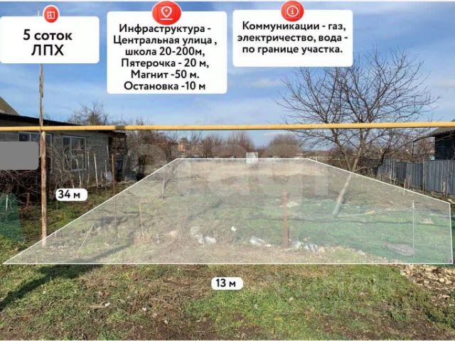 Участок площадью 5 соток правильной прямоугольной формы с фасадом 22 метра расположен в центральной части станицы Курчанская. Земля имеет разрешенное использование под ЛПХ и полностью подготовлена к строительству: все центральные коммуникации проходят непосредственно по границе. Участок продается напрямую от собственника, не имеет обременений, а полный пакет документов готов к быстрой сделке. Данный объект полностью соответствует требованиям программы "Семейная ипотека", что открывает возможность приобретения на льготных условиях для строительства собственного дома. Ключевое преимущество — развитая инфраструктура в шаговой доступности: общеобразовательная школа 20, детский сад 16, магазины "Пятерочка", "Магнит", "Чижик", аптеки, салон красоты, парк и стадион. При этом сохраняется отличная транспортная доступность: до побережья Азовского моря можно добраться за 30 минут, до Черноморского побережья — примерно за час. Это предложение представляет собой редкую возможность приобрести подготовленный участок в самом сердце станицы с полным набором коммуникаций и социальных объектов для комфортной жизни. . Дополнительно оплачивается комиссия с покупателя. Код пользователя: 179400 Номер в базе: 10928750