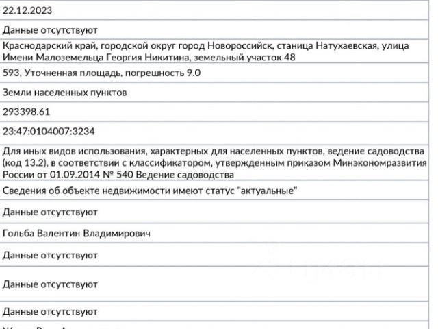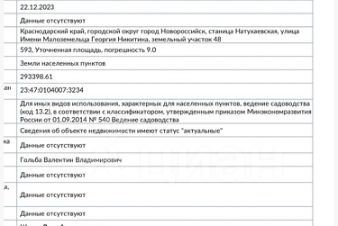 Арт. 126936039 Эксклюзивная продажа от собственника! В продаже земельный участок 6 соток Новороссийский район станица Натухаевская ул. Малоземельца Георгия Никитина Вид разрешённого использования: Ведение садоводства! Находится в границе Земель населённых пунктов. Обжитой район, на постоянной основе живут люди! Коммуникации: Свет на границе участка, Газ буквально в 100 метрах от участка. Вода - скважина, канализация - септик (всё возможно сделать) Документы прошли юридическую проверку и готовы к сделке!