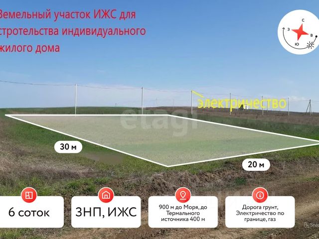 В продаже Земельный участок правильной прямоугольной формы, находящий на проезжей улице между Термальными источниками и Азовским теплым морем Земельный участок: Фасад 30 метров глубина 20 метров Такие размеры земельного участка позволят вам: Расположить на нем несколько домиков Зону отдыха с бассейном и детской игровой площадкой Крытую беседку с мангальной зоной и отдельной зоной барбекю И многое другое для своего личного райского уголка на Азовском море К участка подходят коммуникации: Электроснабжение 10 кВт Газификация по меже Водоснабжение ( скважина) Септик (локальный) Инфраструктура: Термальные источники -1 км. Азовское теплое море -1 км. Кафе и рестораны -1 км. Супермаркеты -1км. Школа 23 -2.8 км. Детский садик -2.6 км. Красивая набережная -5 км. Транспортная доступность: Город Темрюк - 30 км. Тамань 39 км. Черное море в городе курорта Анапы - 60 км. Краснодар 150 км. Данный Земельный участок находится на Таманском полуострове среди двух морей Черного и Азовского, так же на Таманском полуострове вы найдете все необходимое для развлечения, и оздоровление начиная от морского воздуха!!! Просмотр участка можно произвести в любое удобное для вас время . Дополнительно оплачивается комиссия с покупателя. Код пользователя: 187272 Номер в базе: 9593379