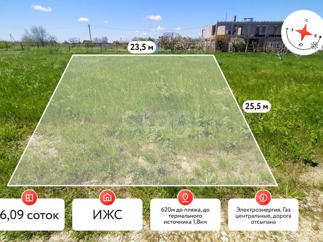 Продается земельный участок 6,09 сот. ИЖС в курортном поселке Кучугуры, всего 620 м до моря. Участок имеет размеры по фасаду 23,5 метра, в глубину 25,5 метров. Участок ровный, никогда не топит, находится в активно застраиваемом районе среди современной малоэтажной застройки, соседи строятся и уже построились. Электричество подведено на участок. Канализация планируется септик, газ рядом, вода планируется скважина. До пляжа Азовского моря 12 мин. пешком. До центра поселка 20 минут. До Термального лечебного источника 1,8 км. В поселке есть продуктовые и промтоварные магазины, минирынок, магазин морепродуктов, школа 23, детский сад 47, спортивные и детские площадки, кафе. Один собственник, участок без обременений, документы готовы к сделке. Археология чистая. Отличное место для Вашего будущего дома. Окажем помощь в выборе надежного застройщика. Успевайте выгодно инвестировать в свое будущее и будущее Ваших детей, земли на юге больше не становится, земля только растет в цене. Звоните прямо сейчас, на связи 24/7. Дополнительно оплачивается комиссия с покупателя. Код пользователя: 187282 Номер в базе: 9268246