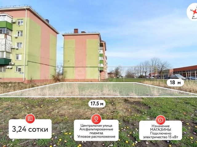 Продается земельный участок на одной из центральных улиц Славянска-на-Кубани. Получено уведомление на строительство коммерческого здания(назначение МАГАЗИНЫ). Взрослые собственники, никаких обременений нет, быстрый выход на сделку Площадь застройки 3,24 сотки, угловое расположение фасады 18 метров и 17 метров, дополнительно 2,8 сотки согласовано под парковку. Коммуникации: заведено электричество 15 кВт (дополнительно можно увеличить кВт), газификация по меже, центральное водоснабжение по меже. Уведомление получено на здание размером 17 на 18 м, документация согласована с администрацией, также есть документы согласования с жильцами прилегающих домов. Планировалась строительство здания и даже предварительно согласованы были арендаторы: Fiх Рriсе - 250 м2 и аптеку 50 м2. Арендный поток 250 000- 300 000 руб. В среднем срок окупаемости около 7 -8 лет. Назначение земли Магазины, зона ОД2 позволяет перевести назначение земли под : Амбулаторное ветеринарное обслуживание, Общественное питание, Гостиничное обслуживание и многие другие виды использования. Отличное расположение на одной из центральных улиц города, в частном секторе, рядом многоэтажные дома. Транспортная доступность: Темрюк - 63 км Азовское море(Голубицкая) -71 км Черное море (Новороссийск) - 92 км Краснодар - 84 км Все документы подготовлены к сделки и дальнейшему строительству вашего бизнеса. Звоните оперативно организуем показ!. Дополнительно оплачивается комиссия с покупателя. Код пользователя: 187265 Номер в базе: 10924423