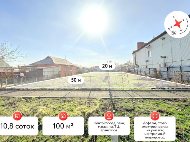 Земельный участок площадью 10,8 соток в центре Славянска-на-Кубани представляет собой готовую площадку для строительства. Участок правильной прямоугольной формы с фасадом 20 метров и глубиной 50 метров имеет ровный рельеф, полностью расчищен и не требует дополнительных подготовительных работ. К территории обеспечен удобный асфальтированный подъезд и пешеходный тротуар по улице Школьной. На участок уже подведены центральные коммуникации — электричество и водопровод, а газовая магистраль проходит по смежному участку, что упрощает процесс подключения. Ключевым преимуществом является исключительная локация: в пешей доступности сосредоточена вся необходимая инфраструктура, включая продуктовые магазины, торговые центры, скверы и основные городские достопримечательности. В нескольких кварталах расположены школа и детский сад, что делает это место оптимальным для создания семейного дома. Участок идеально подходит для быстрого начала строительства собственного дома с высокой добавленной стоимостью благодаря развитому окружению и транспортной доступности. . Дополнительно оплачивается комиссия с покупателя. Код пользователя: 182228 Номер в базе: 11685963