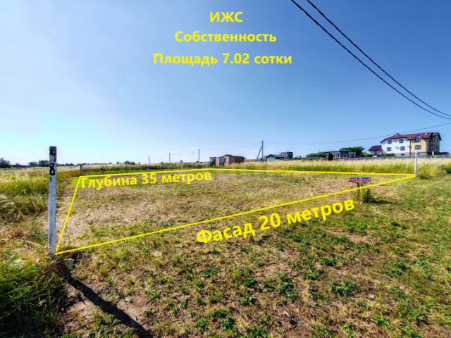 Участок 7 соток ИЖС. Продается земельный участок под строительство дома. Участок ровный фасад 24 метра. Поселок под охраной, под шлагбаумом. Азовское моря 600 метров. Звоните, пишите.