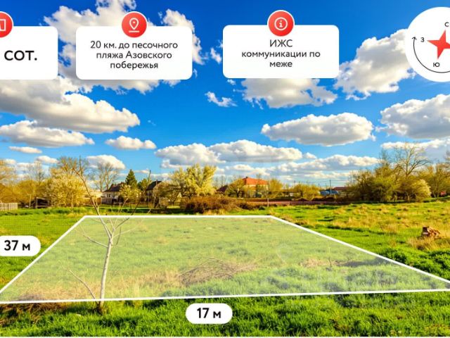 Продается отличный участок возле курорта! Участок площадью 7 соток, правильной прямоугольной формы, ровный, без неоформленных построек, ухоженный, находится в неподтопляемой зоне, на жилой улице. Вид разрешенного использования: для индивидуального жилищного строительства. Границы участка отмежеваны. Все центральные коммуникации, необходимые для комфортной жизни проходят по границам участка, что существенно сэкономит денежные средства при их подключении. Шикарное место для комфортной жизни: рядом отличная школа с сильным составом педагогов, детские сады, дом культуры с множеством кружков и секций, парк и детские площадки, сетевые продуктовые и строительные магазины, остановки общественного транспорта. Поселок находится в экологически чистом районе, рядом каналы и река Кубань, с возможностью охоты и рыбалки, территориально удачное расположение и транспортная развязка позволяет легко добраться до любой точки края, находится между двух морей - Азовского и Черного: 23 км. до г. Темрюк, 35 км. до станицы Голубицкая с ракушечными пляжами Азовского моря, 85 км. до Крымского моста и станицы Тамань, 55 км. до города-курорта Анапа. Возможность любых видов расчетов.Возможен онлайн показ! Помощь в одобрении ипотеки, с нами преференции от ведущих банков страны! Звоните! . Дополнительно оплачивается комиссия с покупателя. Код пользователя: 187276 Номер в базе: 12221899