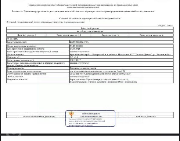 Лот 5370 Продается земельный участок с очень живописным панорамным видом в п. Саук-Дере Крымского района. Об участке: Находится на возвышенности, в тихом, спокойном месте. Общая площадь - 807 кв.метров, в собственности, отмежеван. Коммуникации: электричество на участке, газ, вода - по меже, канализация - по улице. Участок угловой Посажен фруктовый сад: айва, яблони, груши, сливы, алыча, виноград. Также, в продаже соседний участок площадью сотки. О локации: До магазина 7 минут, до школы - 15. В посёлке есть вся необходимая инфраструктура. Рядом расположено небольшое озеро и парк. Регулярно ходит общественный транспорт на все направления. До г. Крымска - 10 км, до г. Новороссийска- 45 км . Больше предложений компании смотрите на сайте "ЭВРИКА".
