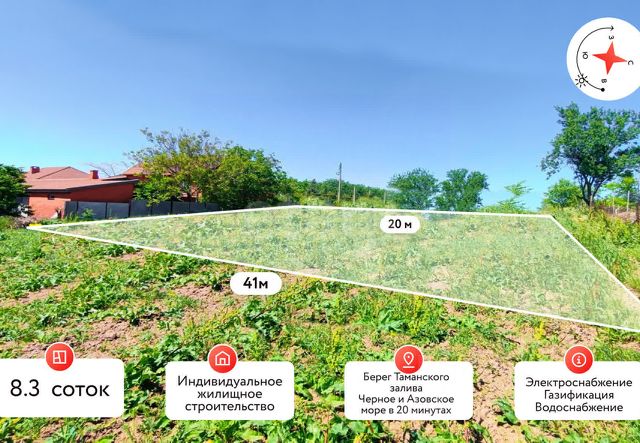 В продаже участок который несомненно станет идеальным местом для строительства дома вашей мечты, ведь данный поселок славится уютом и тишиной и расположен в поселке Сенном, на берегу Таманского залива . Этот участок можно приобрести за наличный расчет и с использованием ипотечных средств. Характеристика участка: • Категория - Земли населенных пунктов. • Вид разрешенного использования • ИЖС! • Площадь: 8 соток • Фасад: 20 метров • Глубина: 40 метров • Рельеф: ровный, правильной формы • Неподтопляемая территория Данные характеристики позволяют освоить земельный участок для строительства большого дома, бани, организации зоны отдыха и посадки молодого сада. --- Коммуникации: • ПОДКЛЮЧЕНО ЭЛЕКТРОСНАБЖЕНИЕ! • По улице проведена подземная линия газификации • По улице проходит центральная линия водоснабжения --- Юридическая составляющая: • Продажа от СОБСТВЕННИКА. • ОТСУТСТВИЕ обременений. • Все правоустанавливающие документы в наличии. • Участок чистый, без строений. • Участку присвоен адрес • Чистая археология --- Удаленность от социальных объектов: • до Школы 3 км • до детского сада 1.4 км • до сетевых магазинов 1 км • до центра поселка 2 км • до автобусной остановки 900 метров. --- Участок расположен в районе, который густо застроен частными домами. В 2 минутах проходит дорога ведущая в центр города и развилка на Краснодар, Анапу и Крым, что обеспечивает хорошую транспортную доступность, в дали от городской суеты и звуков проезжающих машин Звоните, мы готовы выслушать ваше предложение!