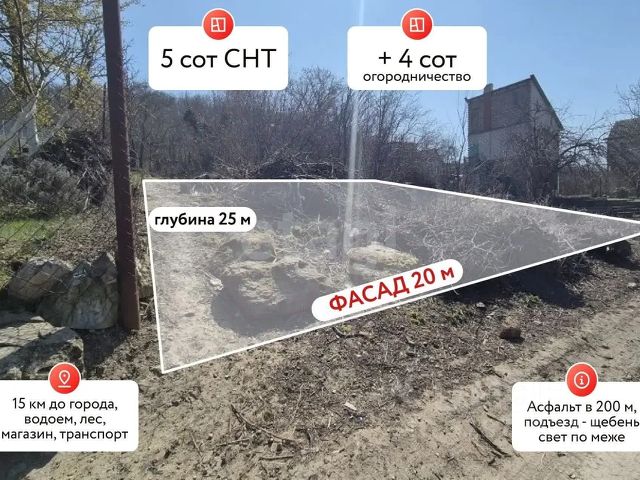 Общая площадь: 9.8 соток в собственности, плюс 6 соток дополнительно земля с/х назначения.