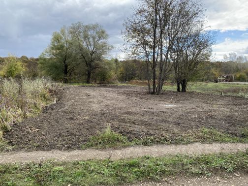Участок ровный, правильной формы, высажен фруктовый сад с капельным поливом. По периметру забор из металлопрофиля и видеонаблюдение.