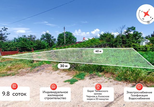 Участок площадью 9.29 соток, правильной прямоугольной формы, ровный, ухоженный, находится в неподтопляемой зоне, на жилой улице, высажен молодой фруктовый сад. Фасад участка 16 метров, в глубину 59 метров.