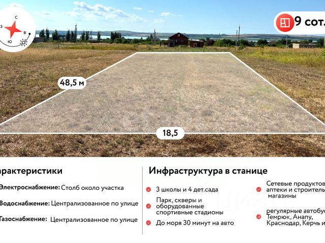 Предлагается к продаже земельный участок площадью 9 соток в станице Старотитаровской. Земельный участок расположен в одном из новых земельных массивов, рядом активно строятся соседи. Площадь участка 9,03 соток, фасад 18,5 метров. Земельный участок правильной прямоугольной формы. Вид разрешенного использования - для ведения личного подсобного хозяйства. По улице проведены линии централизованных коммуникаций - водоснабжение, газоснабжение, электроснабжение. Станица Старотитаровская - самая большая станица в Темрюкском районе. В станице 3 общеобразовательные школы (1-11 классов), 4 детских сада, физкультурно-оздоровительный комплекс с большим количеством спортивных секций, Детско-юношеская школа искусств, станция юных техников и многое другое для развития ваших детей. Так же здесь множество продуктовых и хозяйственных магазинов, есть сетевые "Пятерочка", "Магнит", "Красное и белое"; аптеки "Фитофарм", "Апрель" и другие; Частные пекарни; Рынки фермерских продуктов, овощей и фруктов; Строительные магазины, множественные ПВЗ "Озон", "Wildberries", "Яндекс-Маркет", "СДЭК", и многое другое, что делает жизнь в станице комфортной. У земельного участка один собственник. Документы готовы к выходу на сделку! Звоните!. Дополнительно оплачивается комиссия с покупателя. Код пользователя: 187293 Номер в базе: 10953736