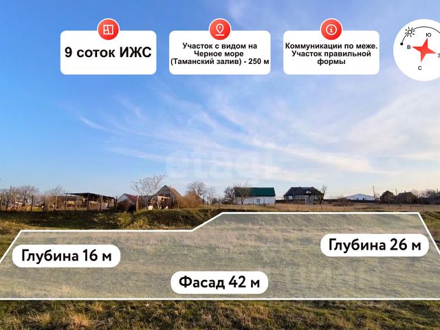 Продается участок ИЖС в станице Тамань! Площадь 9.3 сотки с фасадом 12 метров и расширением до 16 метров. На участке стоит высокий и качественный фундамент, растут плодовые деревья. Подъезд асфальтированный, все коммуникации по фасаду. До набережной 10 минут пешком! В станице есть вся необходимая, для жизни инфраструктура. Один собственник, документы готовы к сделке. Мы являемся партнерами трех банков. Полное сопровождение сделки и юридическая проверка. Специальные условия для участников СВО и по услугам гос. поддержки. Звоните и получите скидку на услугу. При звонке сообщите нам ID объекта 1010399 Отличный участок 9 соток.