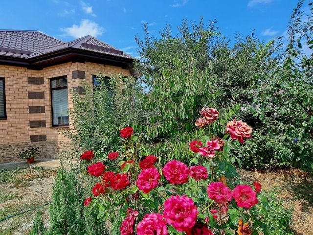 На участке много плодовых деревьев ( яблоня, виноград, вишня, черешня, персик, груша). Много места для организации дополнительных посадок фруктовых деревьев или установки теплицы. Придомовую территорию украшают цветы.