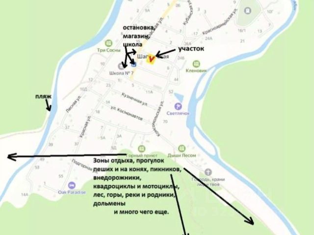 Магазин, школа, медпункт, почта. Остановка автобуса, который 3 раза в день отправляется в г.Абинск. Реки Адегой и Абин 300 м., лес и горы 400 м. Отличное место для круглогодичной дачи или постоянного проживания, отдыха, коммерции. Инвестиционная возможность в природном районе с развивающейся инфраструктурой.