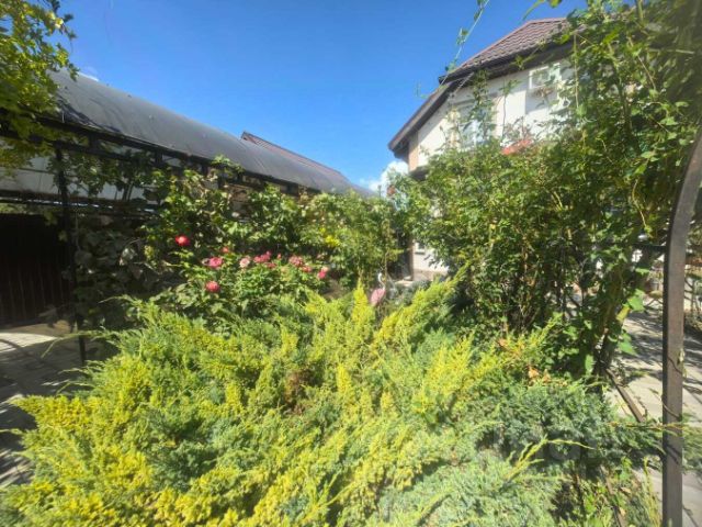 На участке плодоносящий сад: яблоки, персики, абрикосы, инжир, фундук, грецкий орех с хорошим урожаем, груша, слива, черешня, вишня, хурма, лавровый лист. Растет сосна и пихта. Виноград (черный и белый). Черная и красная смородина, крыжовник, малина, ежевика, клубника, в общем много чего. Есть небольшая теплица.