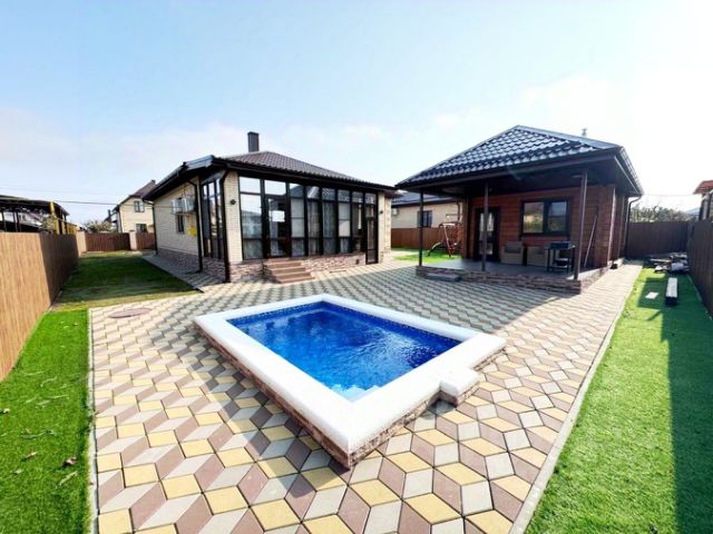 В продаже просторный 1-этажный жилой дом ! В коттеджном поселки КП Морской, в 3 км от моря ! Общая площадь дома 130 кв. Расположен на просторном земельном участке 6.5 соток земли. Дом заходи и живи, Ремонт, Мебель, Техника. Все коммуникации, Свет, Газ, Центральный водопровод. Комфортная планировка, три раздельных спальни,в одной из спален свой с/у и ванная, кухня гостиная с выходом на просторную застекленную террасу. На участке выполнен ландшафтный дизайн, детская зона, открытый уличный бассейн 2.5*3.5 , 1.5 глубиной. Также во дворе есть баня с комнатой отдыха 28 кв, парилка, душ, с/у. Летняя терраса , зона отдыха с барбекю. Перед домом большой навес над всем двором, парковка для двух автомобилей. Асфальтированная широкая улица с освещением. Вокруг все новые дома. Звоните ответим на все ваши вопросы.