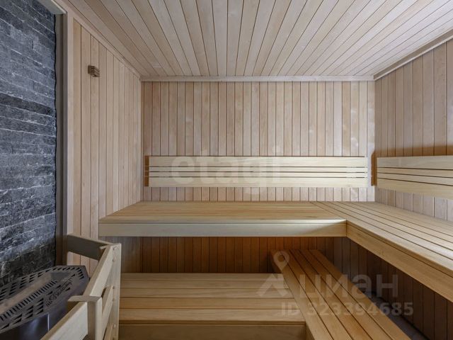 Во втором доме общей площадью 77,6м размещены: просторная студия 20,6м, санузел, бассейн, сауна, инженерные помещения, винный погреб.