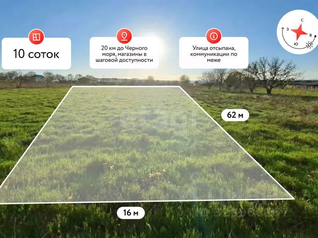 Продаётся участок в х.Белый, площадь 10 соток от собственника. Участок ровный, прямоугольный. Фасад 16 метра, глубина участка 62 метра. Находится в идеальном месте для постройки частного дома. До центра станицы около 1000 м. Подъезд к участку отсыпан щебнем. Электричество, газ и вода проходят рядом с участком по улице. Межевание проведено, границы уточненные. Разрешенное использование - для ведения личного подсобного хозяйства и строительства жилого дома с хоз. постройками. Инфраструктура: школа 30, детский сад 23, магазин Пятёрочка, амбулатория, продуктовые, строительные, хозяйственные магазины, пункты выдачи заказов WB и OZON - всё это в 5-ти минутах на автомобиле. Расположен х. Белый рядом с федеральной трассой между Анапой, Темрюком и Таманью. Собственник один, обременений нет - быстрый выход на сделку! Предоставляем полное юридическое сопровождение сделки по купле-продаже недвижимости. Высококвалифицированные специалисты помогут Вам во всем процессе покупки или продажи. Индивидуальный подход к каждому клиенту. Работаем 7 дней в неделю. Звоните, отвечу на все интересующие вас вопросы!. Дополнительно оплачивается комиссия с покупателя. Код пользователя: 187299 Номер в базе: 12029172