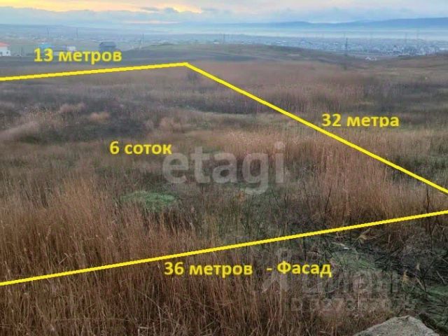Продается земельный участок общей площадью 6 соток. Фасад - 18 метров. Глубина - 31 метр. Отличный видовой участок, с удобным расположением! Категория земель: Земли населенных пунктов. ВРИ по документам для сельскохозяйственного производства. Высокая инвестиционная привлекательность. На своем участке вы сможете построить каркасный дом для постоянного проживания или для дачного отдыха. А так же можно установить модульные домики для сдачи в аренду. Видовые характеристики позволят воплотить в реальность самые интересные архитектурные решения. Рядом соседи построились и подвели коммуникации. Остановка общественного транспорта и продуктовые магазины в шаговой доступности. До моря 2.5 км, до города 5 км. Звоните!. Код пользователя: 41165 Номер в базе: 3369450