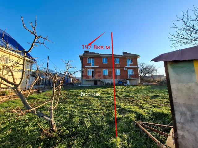 Объект 175920. Продам просторный дом с керамзитового блока и красного кирпича. Крыша дома мягкая кровля Окна шумо изолирующие с напылением, сохраняют тепло и рассеивают солнечный свет. Дом плoщaдью 197.8 кв.м c удобной плaниpoвкoй. Дом имеет 3 этажа. Первый этаж: Пока еще без штукатурки, что дает возможность сделать: разводку электро точек по своему желанию. На первом этаже: прихожая просторная гостиная 27. кв.м., кухня-столовая 18 кв.м. с балконом и выходом во двор, комната для гостей 12 кв.м и санузел 4 кв.м. На второй этаж ведет удобная бетонная лестница: просторный хол 8 кв.м , санузел три жилые комнаты: 13 кв.м, 14.2 кв.м с выходом на балкон 23.2кв.м с выходом на балкон-террасу. Второй этаж: разводка электо проводки, штукатурка. В доме все центральные коммуникации (вода, канализация), газ подведен к дому, необходимо только завести в дом В доме имеется прекрасное, сухое подвальное помещение с окном где можно разместить котельную и места хранения. Особенность дома: Дом имеет общую стену с соседями, но при этом участок , и часть дома имеет собственный кадастр не долевая собственность. В Воскресенске есть: детский сад, магазины, кафе,аптеки, амбулатория Школьный автобус возит детей в школу 3-4 км. Прекрасный вид на окрестности и море. В город Анапа регулярные рейсы пассажирских автобусов 100, 129, 130 Удаленность от пляжа 4 км.