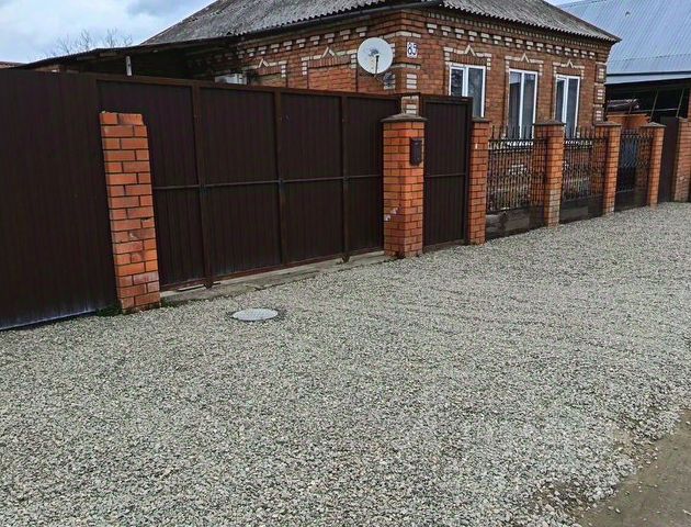 Дом из кирпича и облицован силикатным кирпичом. фундамент бетонный ленточный, кровля шиферная. Забор металлический и профнастил. Двор забетонирован. Фруктовый сад (вишни, черешни, персики, фундуки и грецкий орех). Дом 2 этажный состоит из трех комнат и сан узла на втором этаже, гостиной, кухни, ванной комнаты с сан узлом и прихожей на первом этаже. Окна в доме пластиковые. Высота потолков 2,8м. Дом газифицирован. Отопление и горячая вода от газового котла газовой колонки, холодная вода скважина. Канализация уходит в двухкамерный септик. Есть навес на весь двор и гараж в доме, а также два подвальных помещения. Рядом магазин, остановка, школа, детский сад. Расстояние до Краснодара 90 км. Расстояние до Чёрного моря 140 км.