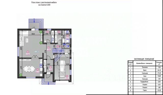 Гостиная, кухня-столовая, котельная с гардеробом, с/у с душем, закрытая