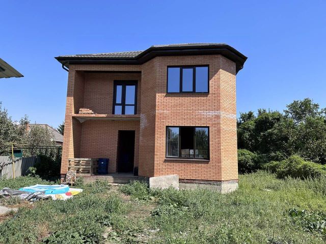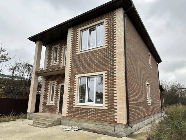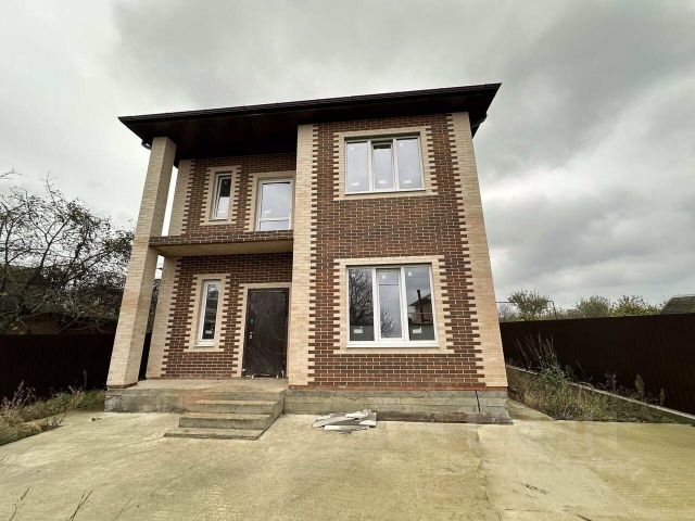 В ПРОДАЖЕ! Новый готовый коттедж в станице Новотитаровской. Дом расположен в микрорайоне новой поликлиники, район уже обжитой, соседние дома — все новые коттеджи. Хорошие подъездные пути, улицы освещены, район газифицирован. Данное предложение подходит для покупки дома с использованием средств льготной ипотеки. Коттедж общей площадью 87,6 кв.м расположен на земельном участке 5 соток, назначения земли ИЖС. Участок огорожен по периметру забором, распашные ворота, калитка. Забетонирована площадка для авто, отмостка — по периметру дома, дорожка к дому. Одноэтажный дом возведен полностью из кирпича, кровля — металлочерепица, металлопластиковые окна с внешней ламинацией, энергосберегающие стеклопакеты. Стены оштукатурены, разведена гостовская электрика, ща допплату застройщик выполнит разводку отопления и стяжку пола. Планировка: прихожая, холл 11 кв.м, санузел 4,5 кв.м, три изолированные спальни, кухня-гостиная 26 кв.м с выходом на задний двор. Коммуникации: свет 15 кВт, вода — скважина 30 м, канализация — переливной септик 10 м3, газ и центральная вода — по меже. Дом готов. Льготная ипотека с удорожанием стоимости дома. Продается загородная недвижимость на улице Почтовая в станице Новотитаровская.