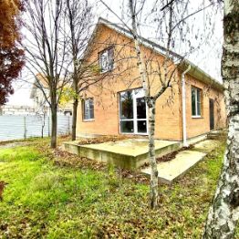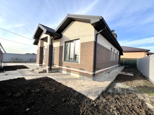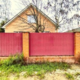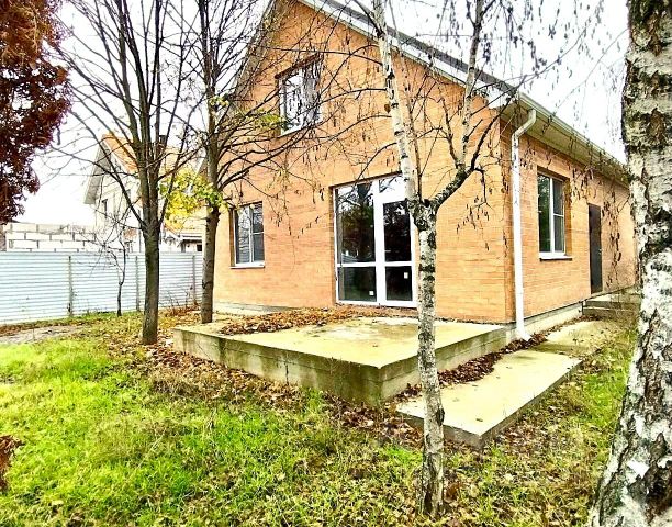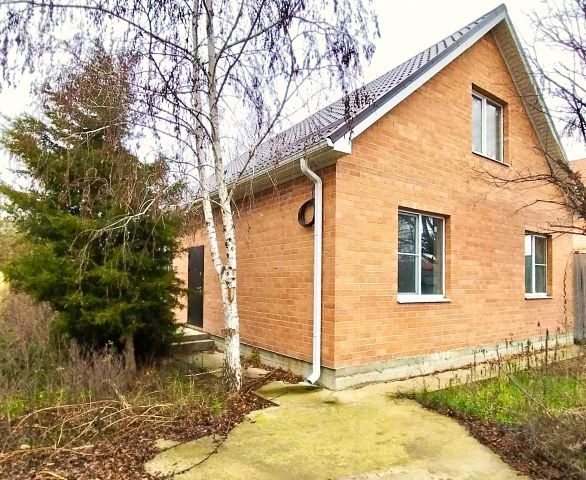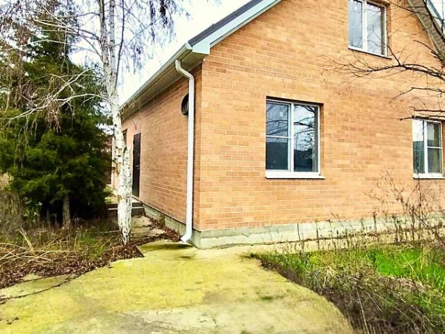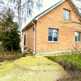 Дом возведен полностью из кирпича, высокий цоколь, металлопастиковые окна, кровля — металлочерепица, большая застекленная лоджия-веранда.