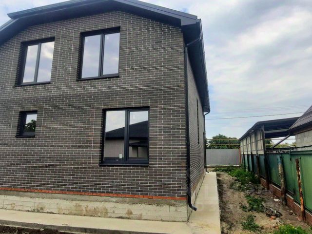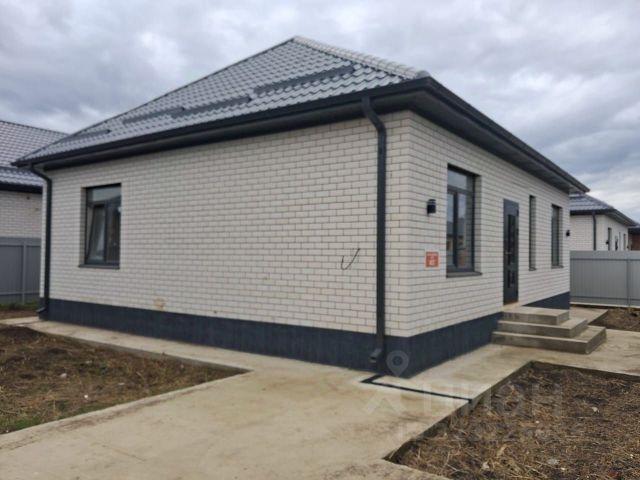В ПРОДАЖЕ! Новый готовый кирпичный коттедж со всеми коммуникациями в станице Нововеличковской. От станицы Новотитаровской — 7 минут на машине. Дом расположен в окружении всей необходимой социальной и коммерческой инфраструктуры, при этом улица тихая, обжитая. До остановки общественного транспорта — 5 минут пешком. Одноэтажный коттедж возведен на свайно-ростверковом фундаменте, материал стен — газоблок, наружные — керамический кирпич, внутренние перегородки — кирпич, большие металлопластиковые окна с внешней ламинацией и низким подоконником (французское остекление), кровля — металлочерпица, крытая терраса. Уютный дом площадью 89,3 кв.м соврменной планировки, где крыльцо, холл 12,6 кв.м, три изолированные спальни, раздельный санузел и кухня-гостиная 25,6 кв.м с выходом на крытую террасу 12 кв.м и задний двор. В доме — предчистовая отделка. Коммуникации: газ, электричество 15 кВт, вода — централизованное водоснабжение, канализация — септик 8 куб.м. Участок 5 соток, назначения ИЖС, огорожен по периметру забором, откатные ворота калитка. Двор благоустроен: забетонирована площадка для парковки автомобилей, отмостка 1 по периметру дома, дорожки к дому. Дом готов. Льготная ипотека с удорожанием стоимости дома.